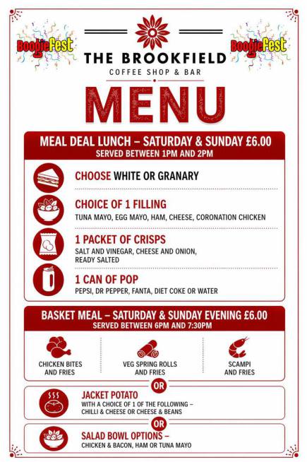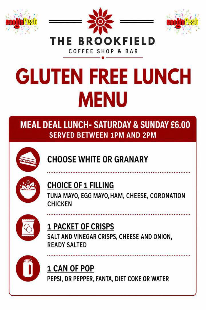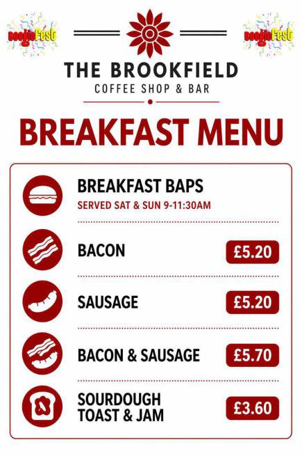 Please see the menus below supplied to us by The Brookfield Coffee Shop and Bar (Part of the CCA).